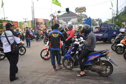 Menariknya, kegiatan ini bukan hanya dilakukan oleh club tunggal, melainkan semua chapter dari YR15CI se Jabodetabek ikut berpartisipasi, ngak terbayang bukan ramenya seperti apa?. Bagi ta’jil dilakukan di daerah Tangerang Sleatan (25/6), dimana lokasi yang dipilih adalah prapatan Pasar Gaplek Tangerang Selatan, lokasi ini sangat ramai dan sering terjadi kemacetan yang tidak bergerak karena padatnya pengendara dan pertemuan 4 lampu merah. Baca juga : City Touring Yamaha Bareng Surabaya Max Owner..!