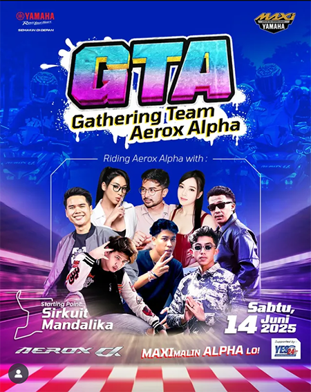 “G.T.A menjadi ruang aktualisasi bagi pengguna Aerox—bukan hanya riding, tapi juga mengekspresikan gaya, membangun koneksi, dan menikmati brotherhood khas komunitas Yamaha. Ini adalah bentuk komitmen kami mendekatkan Aerox sebagai motor sporty premium yang cocok dengan gaya hidup generasi sekarang,” ujar Rifki Maulana, Spokesperson sekaligus perwakilan promosi dari Yamaha Indonesia Motor Manifacturing.