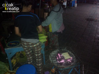 Malam semakin nampak, ketika angin mulai terasa di badan…waktunya merapat ke penjual makan ala bakar bakaran. Tadi ikan yang di bakar bro..sekarang pisang yang di bakar. Ya jajan pisang goreng dulu…meski pisang di bakar, tetap penjual-nya menamai pisang goreng. Manut saja lah…daripada di bilang pisang rebus :mrgreen: