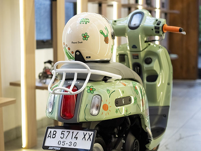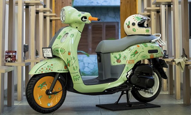 “Desain dari Fazzio Hybrid ini sendiri sebenarnya sudah punya memiliki vibes yang lembut dan juga elegan, terutama karena pilihan warnanya yang unik seperti warna pastel dari Sage Green dan kemudahan untuk dimodifikasi juga menjadi keunggulan motor ini sehingga saya menempelkan sticker secara acak di seluruh bagian yang terinspirasi dari mikroorganisme dan pastinya biayanya masih ramah di kantong karena total harga untuk stickernya hanya sekitar 200 ribuan serta terdapat beberapa part modifikasi lainnya juga yang dipasangkan untuk bisa sesuai dengan tren modifikasi skuter kekinian,” ungkap Sarif, pemilik Fazzio Hybrid Sage Green modifikasi.