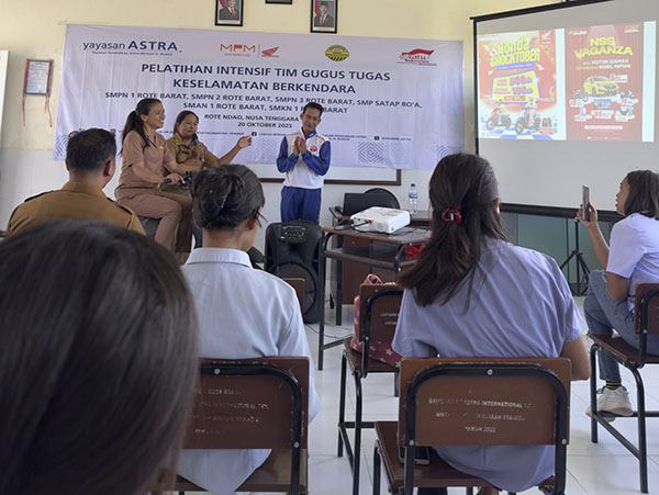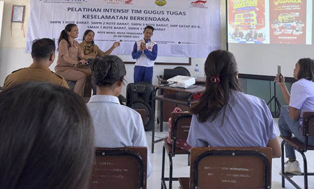 Cicakkreatip.com – Rote Barat & Takari, NTT, 25 Oktober 2025 — Komitmen PT Mitra Pinasthika Mulia (MPM Honda Jatim), distributor sepeda motor Honda wilayah Jawa Timur dan Nusa Tenggara Timur (NTT), dalam menanamkan budaya #Cari_Aman terus diwujudkan melalui berbagai kegiatan edukatif. Kali ini, MPM Honda Jatim bersama jaringan dealer Honda di NTT menggelar edukasi keselamatan berkendara bagi para guru di wilayah Rote Barat dan Takari, NTT, yang berlangsung pada 20–24 Oktober 2025.