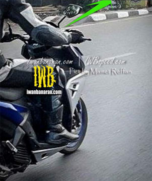 Yang diduga Yamaha Aerox 125! diumbar terus di jalan…hingga, gambarnya banyak kejepret pengguna jalan lainnya. Yang baru, seperti diberitakan om macantua.com…bentuk Yamaha Aerox bagian depan tepatnya fokus pada kemudi terlihat jelas bahwa dari sisi depan Aerox ini gundul dengan apliaksi stang telanjang. Yang menarik dari posisi depan ini adalah posisi lampu sein-nya. Coba amati…