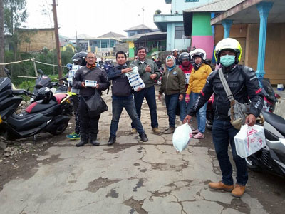 Disaat gunung Bromo sedang siaga, setidaknya asap tebal telah memenuhi wilayah sekitar. Berangkat dari situ, SUMO dengan 38 member pakai Nmax membagikan masker kepada warga setempat, “Dari sumbangan semua dulur-dulur SUMO telah kami belikan 8000 pcs masker untukdisumbangkan, masker tersebut Kami serahkan kepada perwakilan camat untuk dibagikan kepada warga sekitar” ujar salah satu member.