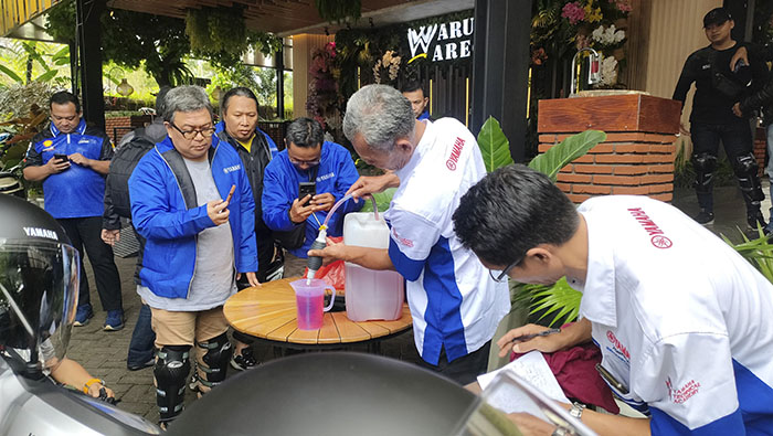 Sebelum sampai di sirkuit Jalibar, sebelumnya kami singgah di salah satu rumah makan, karena saat itu sudah waktunya makan siang dan sholat duhur. Kebetulan team Yamaha saat itu melihat konsumsi BBM rata -rata dari setiap kendaraan yang dipakai media dan blogger. Kurang lebih jarak kami start sampai di rumah makan ada sekitar 20 kilo meter. Ada yang berkendara single ada yang bawa boncengger, dari hasil metode pengukuran full to full, rata-rata konsumsi bahan bakar Yamaha gear menghabiskan 90 mili liter/kilo meter. Irir banget!