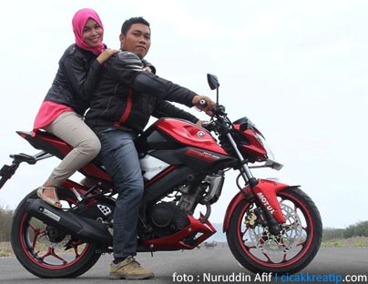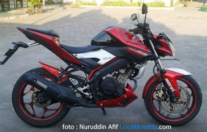 Yamaha MT25 Jadi jadian…! Loh iyo….memang jadi jadian beneran :D Bro Nuruddin Afif pemilik Yamaha Vixion ini memang suka ngerumat motornya, bukan hanya itu..bahkan akhir akhir ini dia sering main sulap sama pacarnya :D Ya… Yamaha Vixion miliknya telah disulap menjadi Yamaha MT25! asli kalau melihat finishing dari modif ala MT25 ini memang top…pas, detailnya juga apik, gak berantakan.